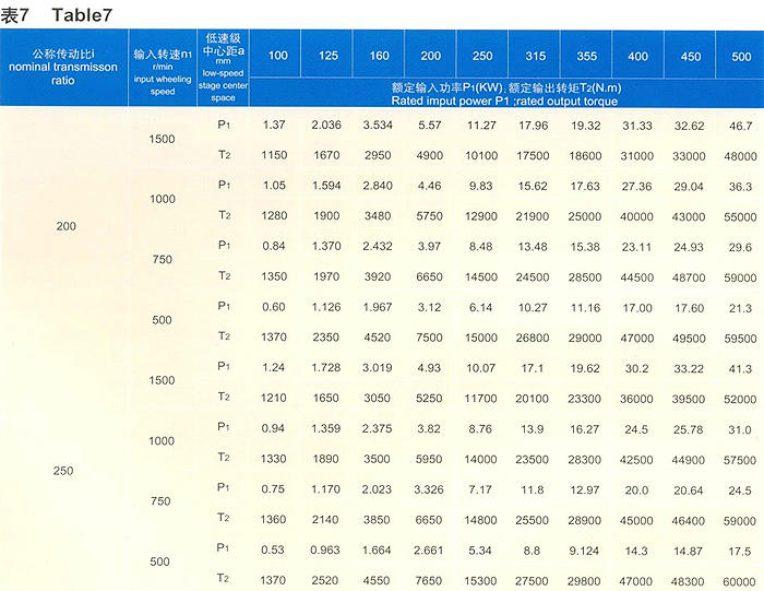1、CCWU、CCWO及CCWS減速器的額定輸入功率P1及輸出轉短T2應符合表7的規定