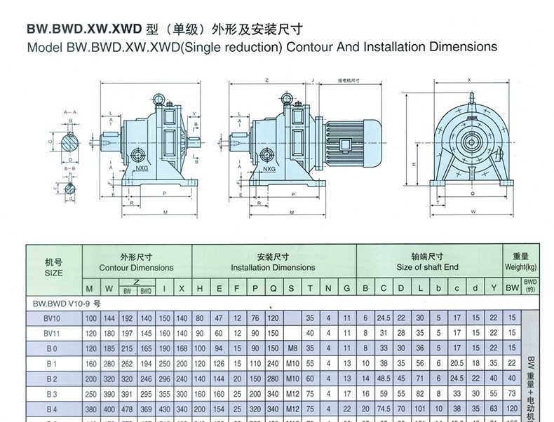 BWD5-11-15KW減速機擺線針輪減速機的型號及種類: B系列單級機型有:0 1 2 3 4 5 6 7 8 9 120 150 180 220 270 330 390 450 550 650 12 15 18 22 27 33 39 45 55 65 X系列單級機型有:X2 X3 X4 X5 X6 X7 X8 X9 X10 X11 其減速比有: 7 9 11 17 23 25 29 35 43 59 71 87 雙級機型有:10 20 21 30 31 41 42 53 63 74 84 85 95 106 1512 1812 2212 2215 2715 2718 3318 3322 3922 4527 5533 其減速比有:121 187 289 385 473 595 731 841 1003 1225 1505 1849 2065 2537 3481 5133 7569