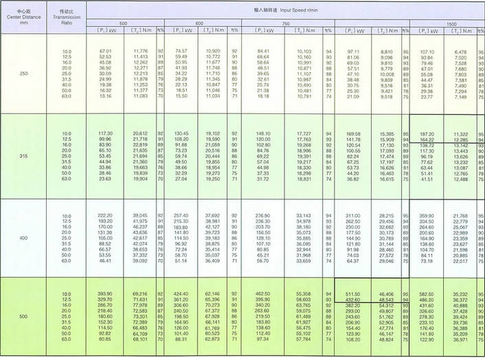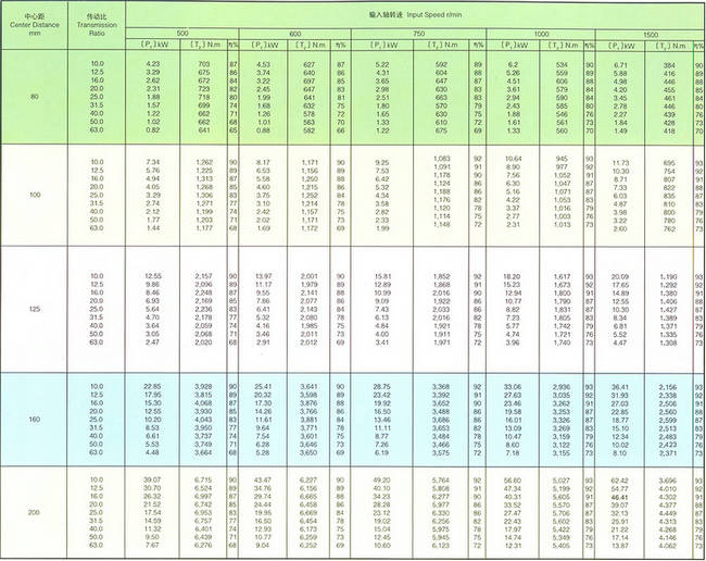 五、平面包絡(luò)環(huán)面蝸桿減速器額定輸入軸功率表